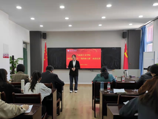 为进一步增强研究生职业规划能力和弘扬积极向上的学习氛围,11月25日下午,马克思主义学院第八届“我的硕士路”演讲比赛在学院511正式拉开帷幕,由马克思主义学院党总支书记马寒,党总支部副书记冯慧娟以及辅导员李敏和学业班主任郭发担任评委,2021级全体研究生参加了此次活动。