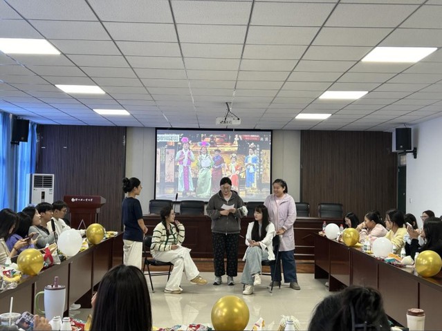2025级新生以宿舍为单位带来了歌曲演唱、马理论四句半、改编小品等节目活跃了现场气氛,游戏环节的气氛活跃,新老生积极参与,随机组队、默契配合。互相介绍和问题解答环节,大家针对考博升学、考公就业、论文方向选定、导师选择、奖学金评定等学习工作中遇到的问题进行了交流讨论,不仅带来了欢笑,也加强了新老生间的交流。