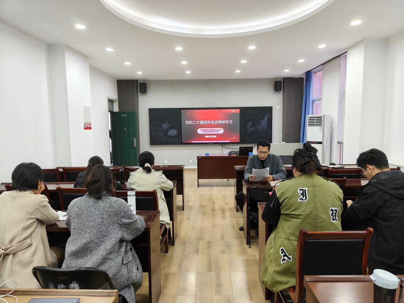 张少停首先对党的二十届四中全会召开情况进行整体介绍,然后围绕全会公报核心内容展开解读。他指出,党的二十届四中全会是乘势而上、接续推进中国式现代化建设的又一次总动员、总部署。学习贯彻全会精神是当前以及今后一段时期的重大政治任务。全体党员教师要把学习全会精神作为提升政治素养和业务能力的重要契机,通过深入研讨、交流心得,不断增强对党的创新理论的理解和认同。同时,支部教师要将全会精神融入习近平新时代中国特色社会主义思想概论课堂教学,培养担当民族复兴大任的时代新人。此外,他还鼓励大家积极投身教学改革与科研创新,以实际行动践行全会精神,为推动学院和学校各项事业发展贡献智慧和力量。