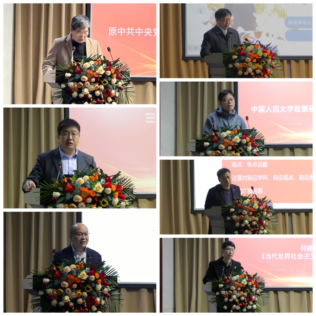 在主旨报告环节,原中共中央党史研究室宣传教育局副局长薛庆超教授、苏州大学桑明旭教授、湖南师范大学陈文胜教授、上海交通大学王强教授、中国人民大学刘志洪教授、中共河南省委党校《学习论坛》执行主编薛瑞汉教授、《当代世界社会主义问题》期刊编辑何建春等专家学者分别作主旨报告。