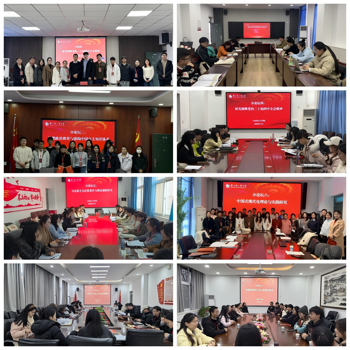 会议设置八个分论坛,与会学子围绕“研究阐释党的二十届四中全会精神与中国式现代化”“马克思主义经典著作与理论创新研究”“中国式现代化理论与实践研究”“文化自信与中国自主知识体系构建研究”等主题展开精彩的思想碰撞与学术交流。