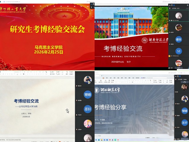 为帮助研究生明确学术发展方向,科学规划考博路径,2月25日上午,马克思主义学院通过腾讯会议平台举办考博经验交流会。本次会议由学院辅导员景悦老师主持,2026届全体研究生线上参加。