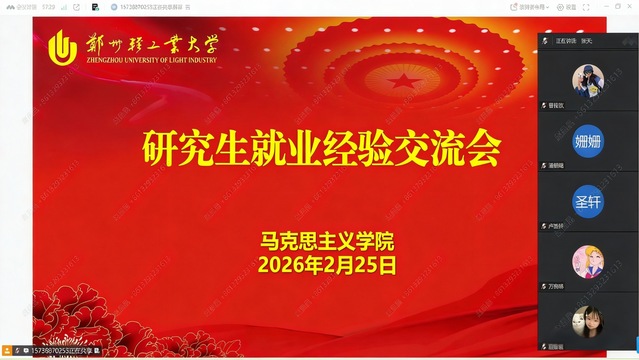 为帮助研究生明晰就业方向,提升求职竞争力,2月25日上午,马克思主义学院通过腾讯会议平台举办就业经验交流会。本次会议由学院辅导员景悦老师主持,2026届全体研究生在线参与。