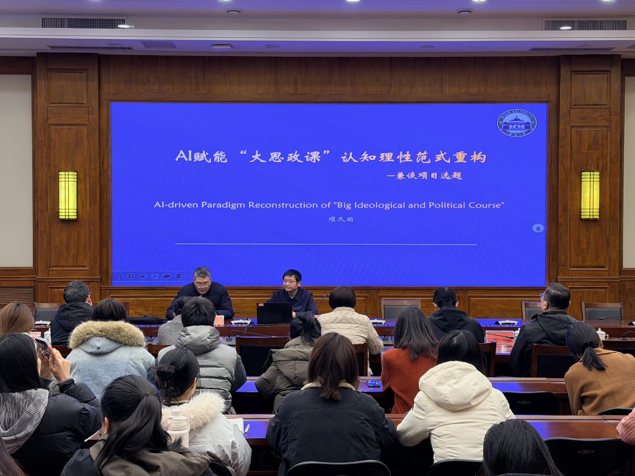 项久雨教授以“AI驱动‘大思政课’认知理性范式重构”为题,从“大思政课”范式解构、出场语境、理论聚焦、意义指向四个维度展开系统论述。他指出“大思政课”范式重构既是学科历史积淀的结果,也是应对现实挑战、适应科技发展、回应教育目标的现实选择。AI驱动下的“大思政课”范式重构不仅是教学手段的迭代更新,教育理念、组织形态、传播机制与育人逻辑的整体性系统性变革,是“技术驱动-功能转换-生态重塑-结构革新”的过程。他强调需顺应“人-机”互动趋势,推动教学目标、内容、方式向智能化、个性化转型,实现从“单向灌输”到“交互参与”、从“知识接受”到“主体建构”、从“工具应用”到“育人协同”的根本跃迁。其重构意义在于推动教育形态、空间、机制创新,实现场域拓展、协同联动、价值回归、教育延伸,构建“人机共生、价值共塑、生态共建”的新型教育体系。