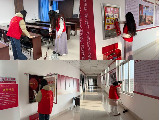 活动中,志愿者们分工协作,对会议室、教室、走廊等区域进行全面清扫,清理卫生死角,整理公共物品,使学院环境整洁有序。同时,志愿者们对消防设施、电器设备、疏散通道等进行细致排查,检查灭火器有效期、电线线路安全等情况,并将发现的问题及时记录上报。